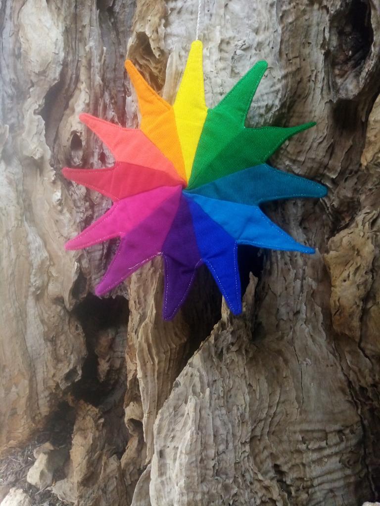 Ces différents mandalas textiles sont réalisés suivant le nombre d’Or, proportions harmonieuses que l’on retrouve partout dans la Nature.