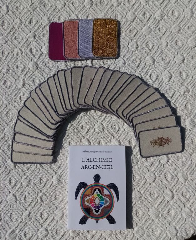 Des œuvres textiles vibratoires réalisées à partir de tissus aux couleurs magnétiques accompagnées d’un livre et d’un tarot crées ensemble par Hélène et Gwenaël pour vous emmener dans un voyage au cœur des couleurs…les œuvres Arc-en-Ciel sont des créations textiles aux couleurs intenses, dont les tissus sont tissés à la main sur les hauts plateaux du Guatemala.