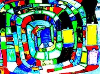 Ce Mandala sera constitué de collage de scotchs de couleurs, noir doré, blanc- (rouges) multicolores. Agrafés de papiers, de collages, de calque, de feutres, de plumes, de poudres de dorure, de vernis à ongles et différents matériaux. C’est aussi Mille et une voix, d’écrire une phrase, un mot, un secret caché. Une tache, une éraflure, un geste qui s’attache à laisser une trace.