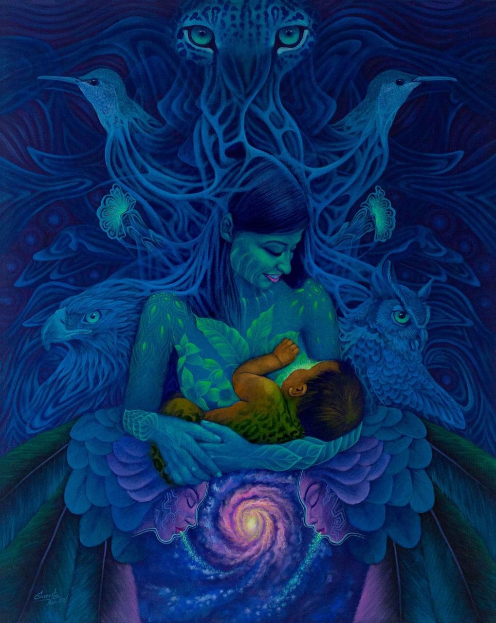 est originaire de France, elle vit actuellement en Amazonie péruvienne dans la ville de Pucallpa, dès son plus jeune âge elle est appelée à explorer d’autres scénarios à la recherche du sens de la croissance intérieure, ainsi elle a l’opportunité de faire un voyage en Amazonie péruvienne à la rencontre d’expériences et de savoirs ancestraux aux coeur de certaines de leurs cultures qu’elle reçoit avec gratitude à chaque étape de son apprentissage, C’est ainsi que dans les différentes disciplines artistiques, dont la peinture, elle parvient à transférer ce qu’elle a appris sur le plan matériel, ce beau message et les sons de l’espace naturel des plantes avec lesquelles elle vit en son sein.