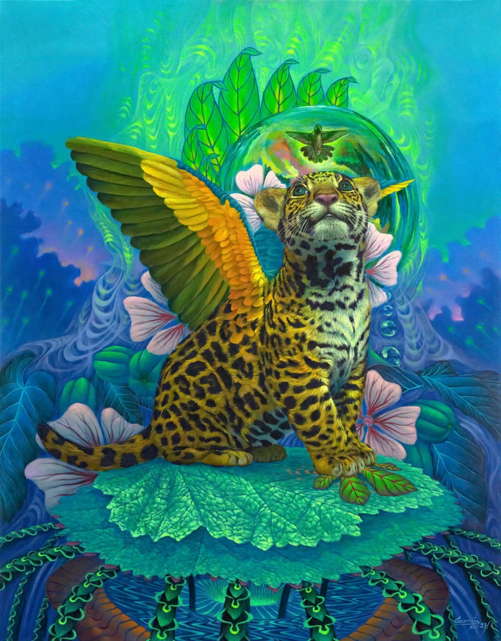 Son inspiration artistique s’inspire de la flore et de la faune de sa culture, baigné dans le rythme des traditions qui l’entourent depuis sa naissance, fasciné par ce qu’il contemple il décide de partager cette grande expression de la nature à travers l’art, en travaillant avec un support académique artistique et en s’ouvrant également à l’initiation sacrée des plantes enthéogènes pour approfondir et exalter les messages et la présence vibratoire de ce grand univers qu’est le vivant et pouvoir ainsi offrir une œuvre pleine de couleurs.