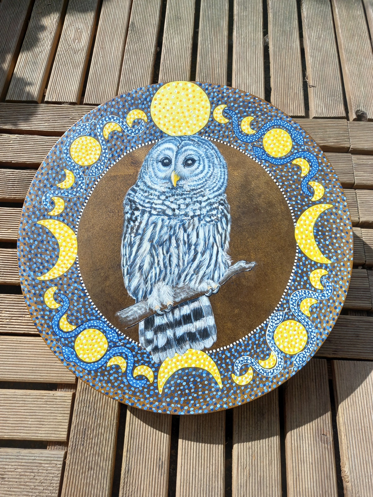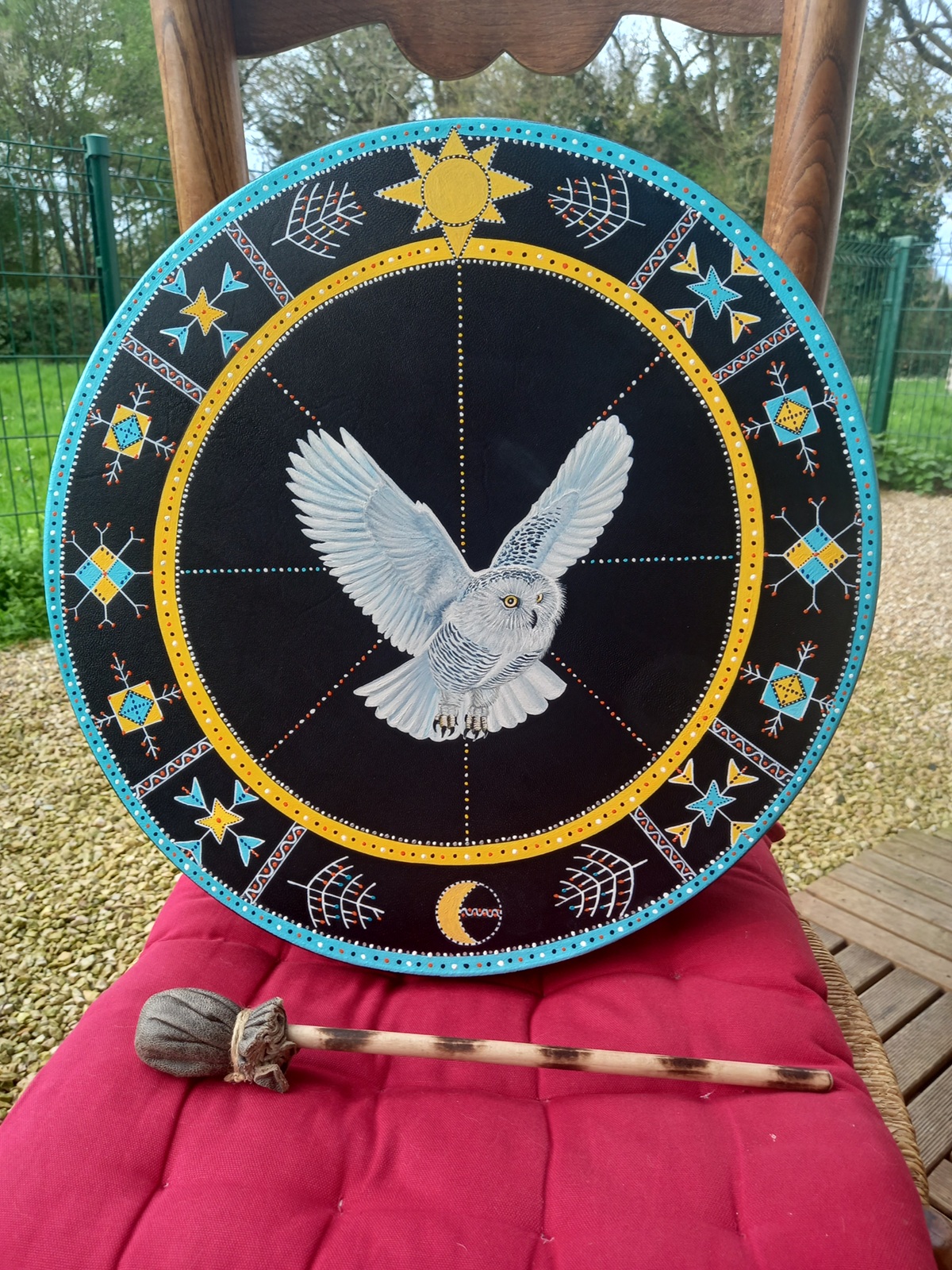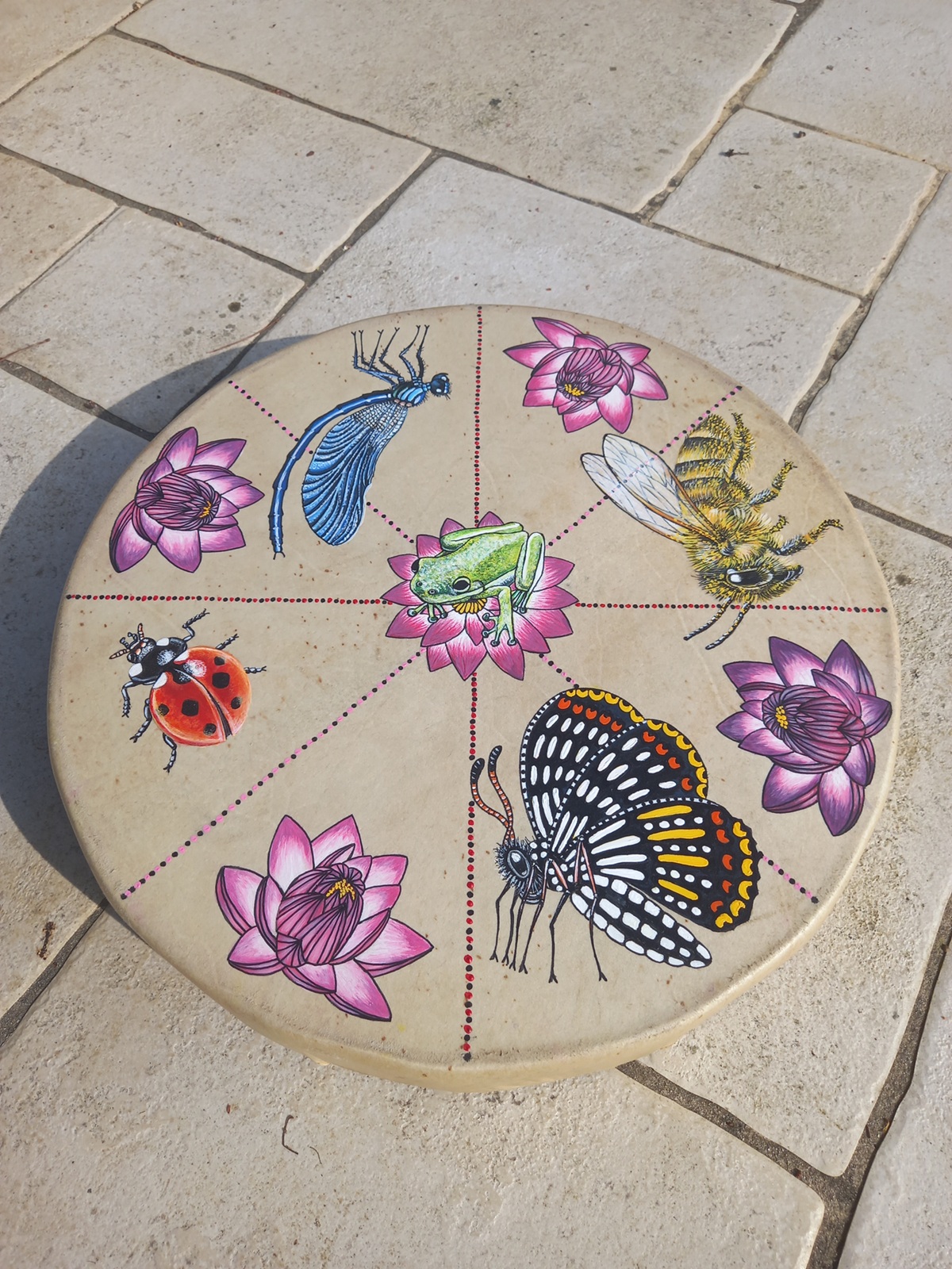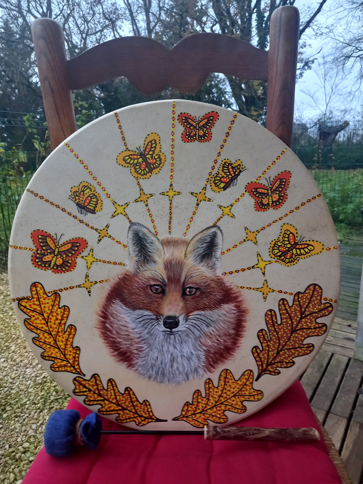 Artiste peintre depuis plus de 40 ans, Marie Françoise révèle l’animal qui s’invite sur le tambour.