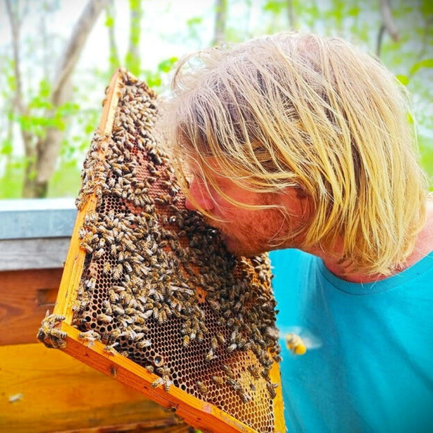 Après plus d’une vingtaine d’années à cheminer auprès des abeilles dans différents domaines apicoles (France et Amérique du Sud), de profondes prises de conscience et remises en question m’ont métamorphosé, notamment sur le lien au vivant.